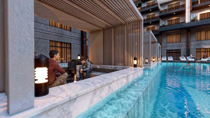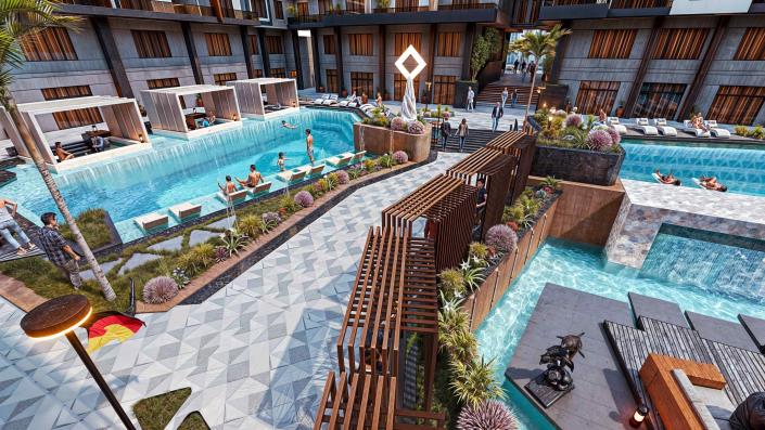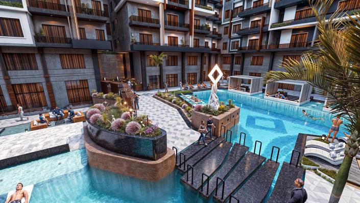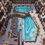 Full Description In the heart of Hurghada – El Hadaba mainstreet Rd.Unit Types* Studio, from 30 to 57m* One Bedroom, from 56 to 80m* Two Bedrooms, from 76 to 115m* Three Bedrooms, from 137 to 144mFacilities* 2 Swimming Pools* 24/7 Security* 5 Gates* 10 Elevators* Central Satellite* Commercial area* Cafe and Restaurants* Housekeeping and Laundry* Property Management* Supermarket* Parking* Gym* SpaDelivery* Fully Finished – Ultra Super Lux* Dec 2026Payment Plan* 20% Down payment* 4 Years Installments* 8% Lifetime Maintenance fees – upon Delivery Read more